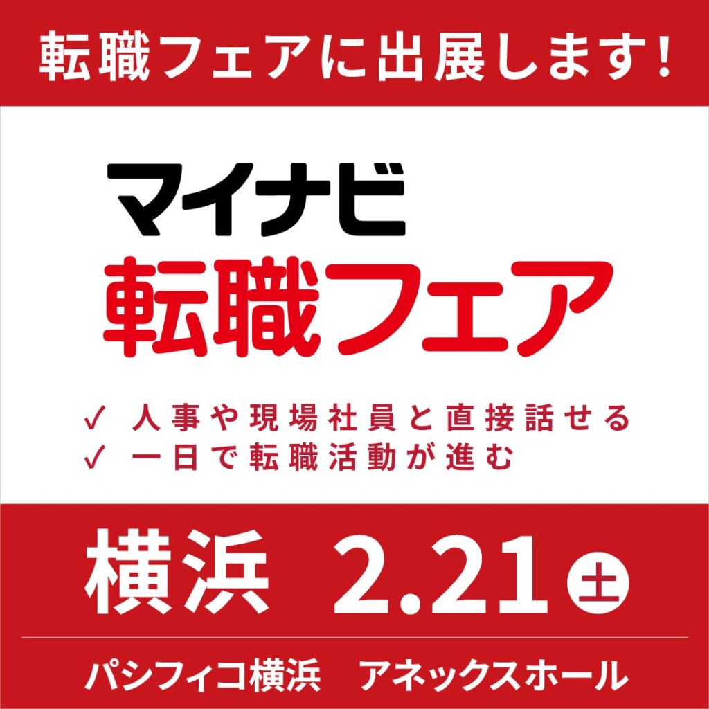 横浜で開催されるマイナビ転職フェアに出展いたします。